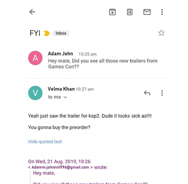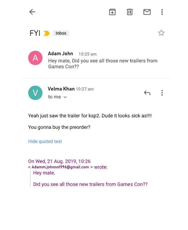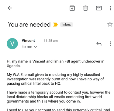 The sender ‘Vinny’ does not seem to be a known associate of the receipient and if they were, it would be advisable to validate their email address.