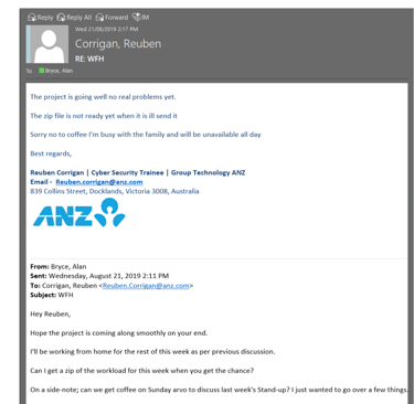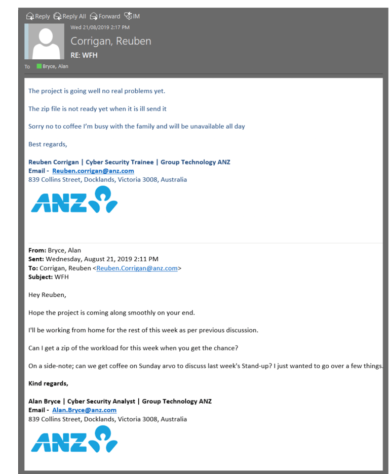 The email correspondence has the official ANZ logo in it as well as the email addresses are ‘@anz.com’ which indicates that this is the official ANZ email server.