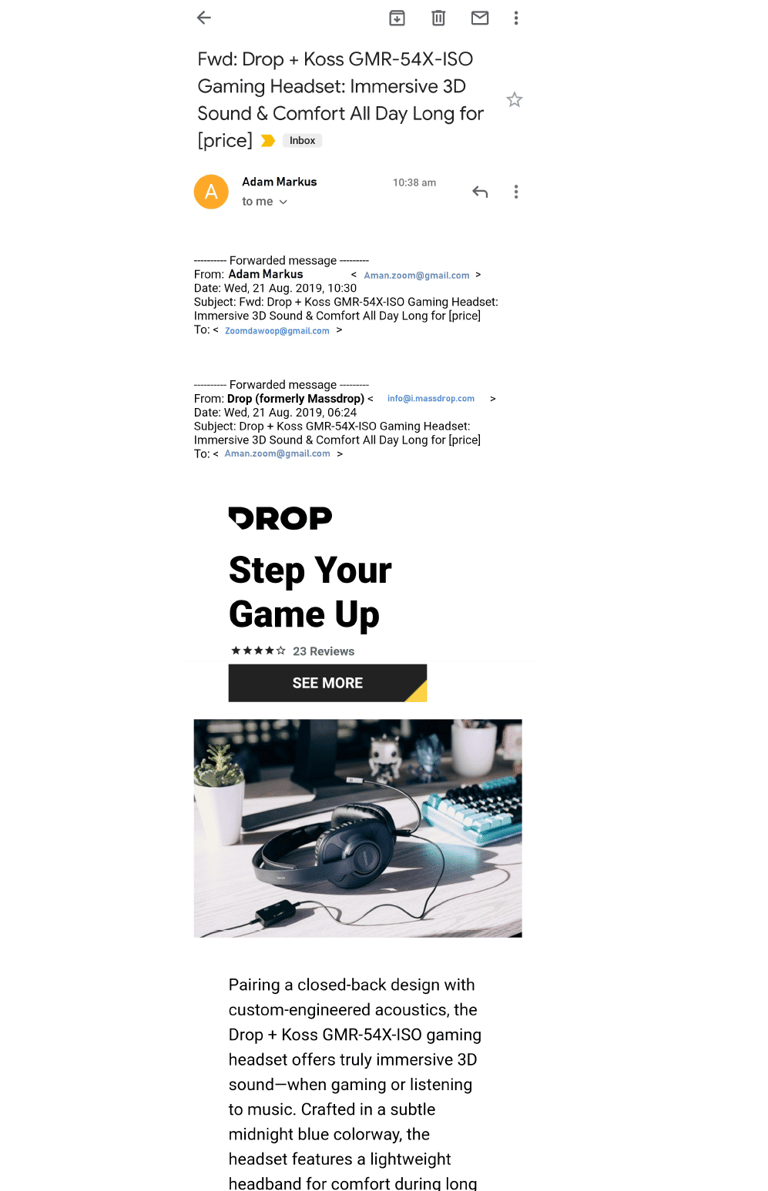 The info@i.massdrop.com deems to be a safe email address with little ambiguity.